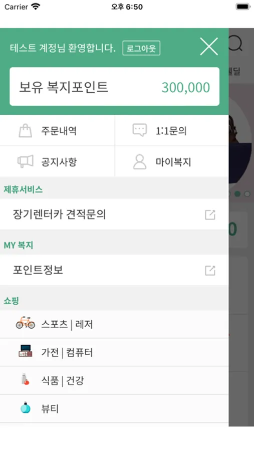 포인트 확인, 복지카드 환급신청, 영수증 청구를