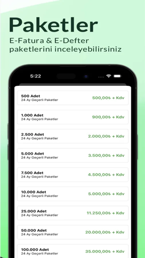 E-Fatura Kullanmak Çok daha Hızlı, Ekonomik ve Kolay. E-Arşiv portal da fatura oluşturmak için zaman kaybetmeyin Mobil uygulamamızla zaman ve mekan sınırı olmadan istediğiniz yerde istediğiniz zamanda Mobil telefon veya tabletinizden Fatura oluşturun gelen ve giden belgelerinizi kontrol edin. Oluşturduğunuz belgeler 10 yıl saklanır istediğiniz an erişebilirsiniz . Ekonomik Kontör Fiyat tarifemizi görmeden karar vermeyin uygun fiyat tarifelerimiz için Paketler Sekmesine bakınız.