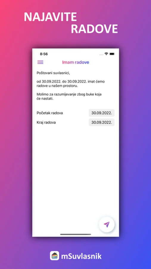 • a vi svoje susjede možete obavijestiti da ćete imati radove ili ih upozoriti na buku