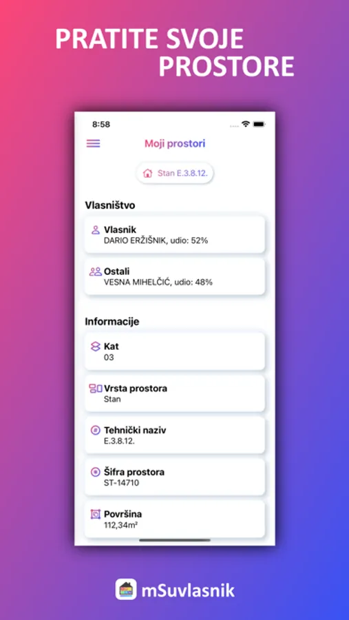 • informacije o vašoj zgradi, prostoru, predstavniku i ostalim suvlasnicima