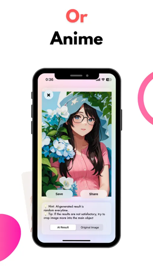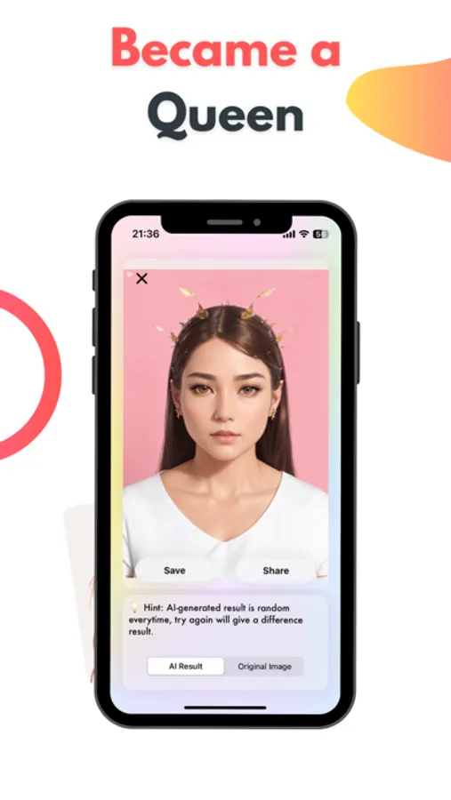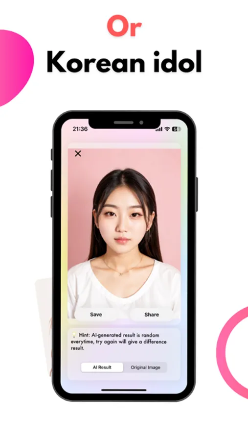 Turn yourself into Queen, Prince, K-pop idol or Anime in just one click. More styles to come in the future!