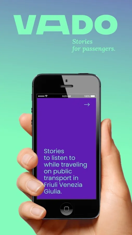Vado is an audio experience developed for the bus lines of the city of Udine, for the train connections Udine-Gorizia and Gorizia-Trieste, and for the Trieste-Muggia boat service. It consists of an app which offers audio, site specific contents: stories and music activated on selected routes, and which can be listened to only while travelling, turning the journey into an unprecedented narrative experience.