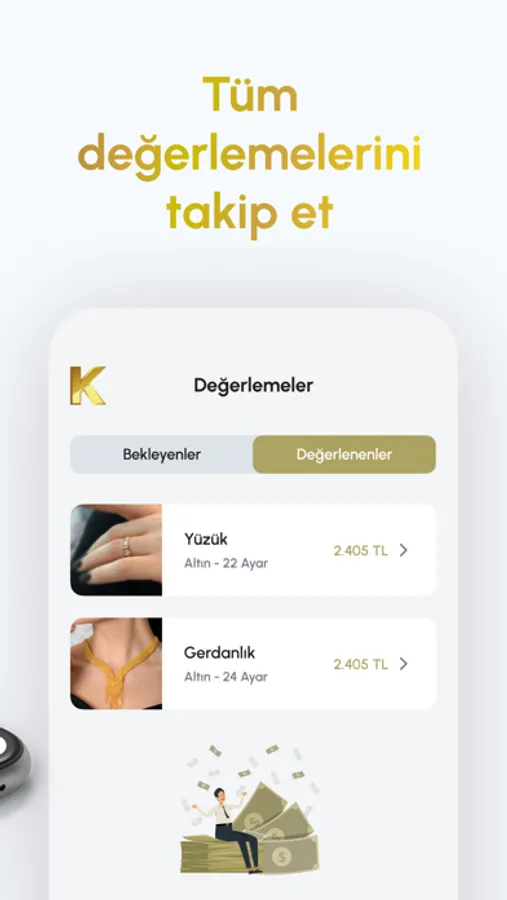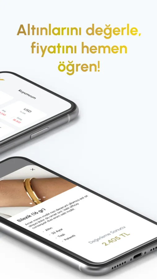 Online Kuyumcunuz artık telefonunuzda güncel altın fiyatları başta olmak üzere bir çok özellikle beraber dilediğiniz zaman kendi ürünlerinizin fotoğraflarıyla birlikte kısa sürede değerlenip siz değerli kullanıcılarımızın aklındaki ürünüm acaba ne kadar sorusunu giderecek bir uygulama ile karşnızdayız. Basit arayüzüyle birlikte bağımsız fiyat talebinizi yerine getirecek olan bu uygulamada sizin ürünlerinizin değerlemesi kuyumcular tarafından yapılır böylece evdeki hesabınız çarşıya çıkmadan en yakın şekilde belirlenir.