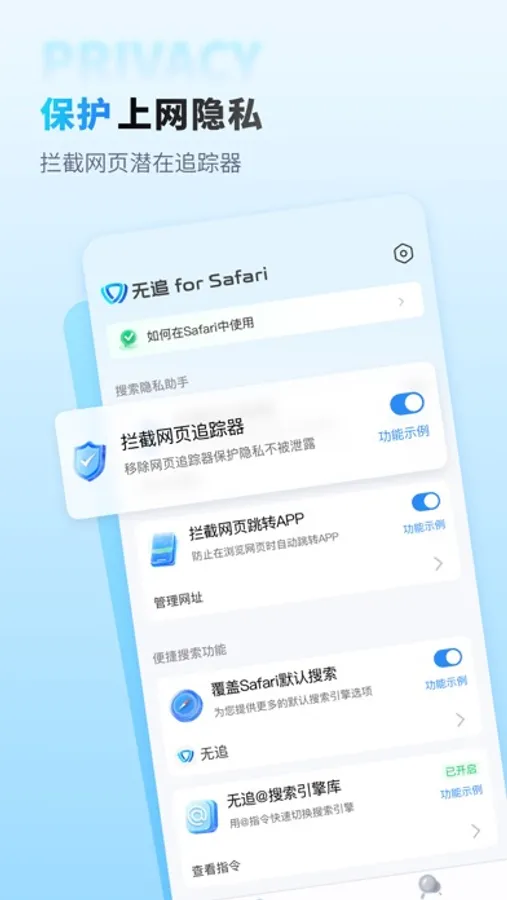 无追扩展是由主打隐私搜索的无追搜索推出的Safari浏览器扩展,基于IOS15开发。无追 for Safari帮助您解锁更加便捷快速的搜索新方式和新体验。在无追:
