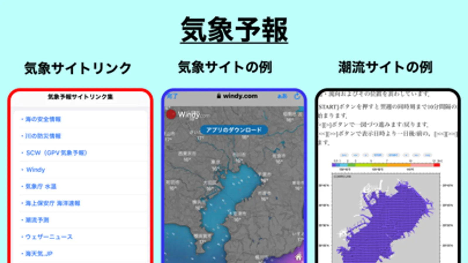 ・気象予報サイトへのリンク集で簡単に予報を確認できます。