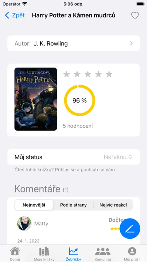 Během čtení knihy se ti určitě honí hlavou spousta myšlenek a byla by škoda nechávat si je pro sebe. Bookaholic je aplikace pro všechny knižní nadšence, kteří chtějí průběžně sdílet svoje dojmy z knihy, kterou právě čtou. Není potřeba čekat až na dočtení a pak sepisovat dlouhé recenze a hodnocení. Místo toho můžeš přidat řadu kratičkých komentářů - kdykoliv máš chuť. A taky si můžeš přečíst, co si na stejné straně mysleli ostatní.