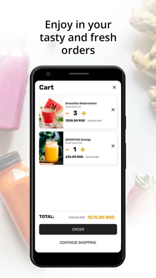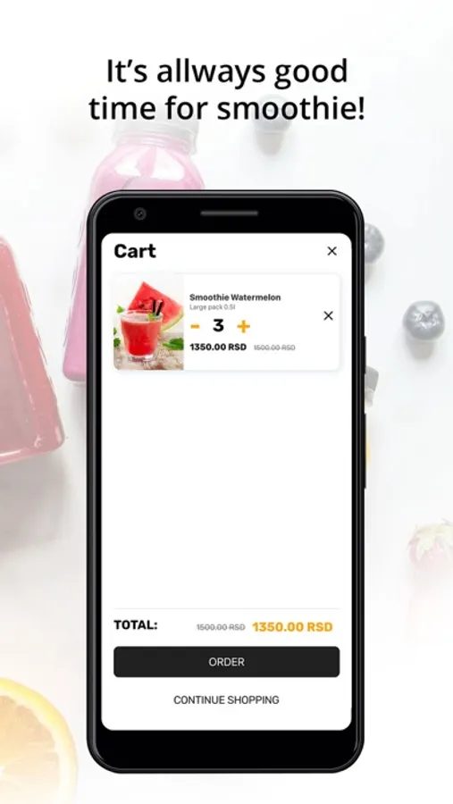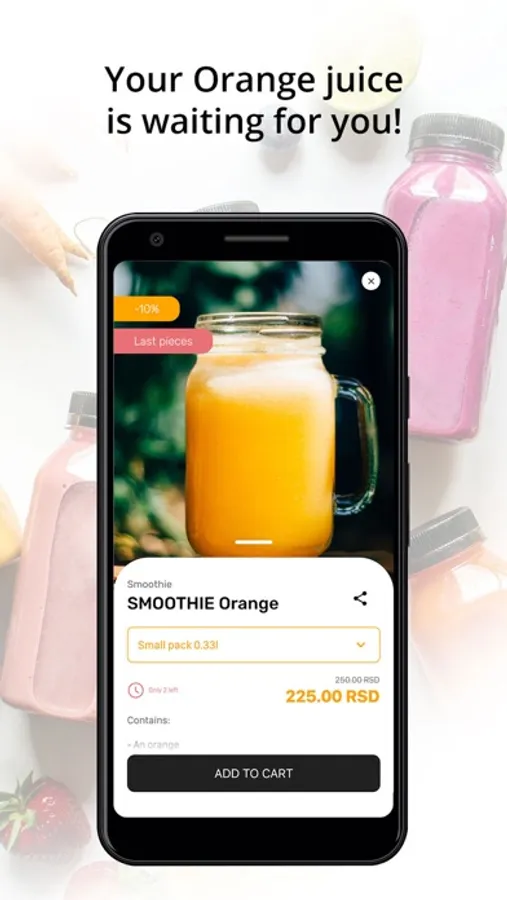 In addition to the fact that you can order our products with one click via the mobile application, you can always come to our little kingdom of fruits and vegetables and we will mix a drink from the ingredients you choose on the spot!