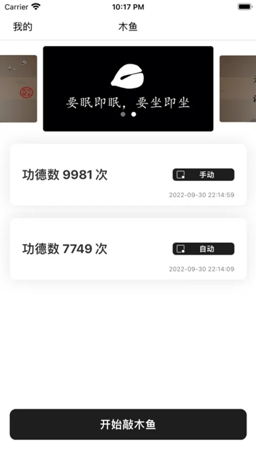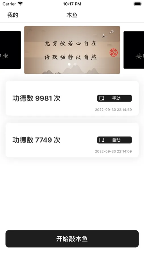 电子木鱼作为一款为用户提供精心凝神的工具,通过敲击木鱼给用户做到摆脱烦恼,提供了多种木鱼音色供用户选择,用户选择自己喜欢的音色进行修心。