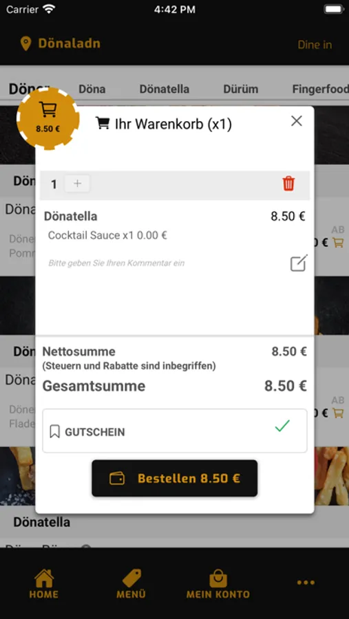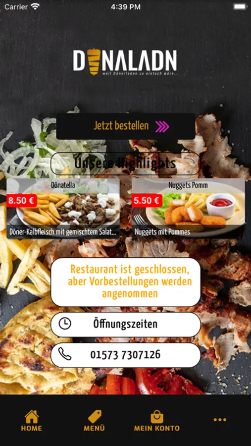Herzlich Willkomen bei Doenaldn in Essen. Wir bedienen unsere Kunden mit Döner, Dönatella & Fingerfood Speisen und machen das seit mehreren Jahren aus Leidenschaft. Wir freuen uns immer wieder neue Kunden unsere Herkunft näher zubringen und möchten ihnen die Möglichkeit geben, ihre Bestellung unkompliziert und total einfach abzugeben. Aus diesem Grund, möchte wir ihnen unsere neue App und unseren Online Shop vorstellen, mit dem Sie problemlos über Paypal, Bar und Kreditkarte zahlen können.