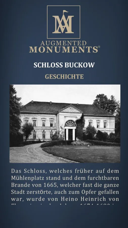 Augmented Monuments brings long-lost buildings and cultural-historical monuments back to life. With our app, users have the opportunity to experience the lost buildings and monuments visually and up close directly on site. Buildings that are no longer present due to decay and destruction are reconstructed in 3D through augmented reality and placed in the real environment via the smartphone. All objects can be viewed in three-dimensional space from all sides. The impression is given that the buildings and facilities are back where they were originally erected.