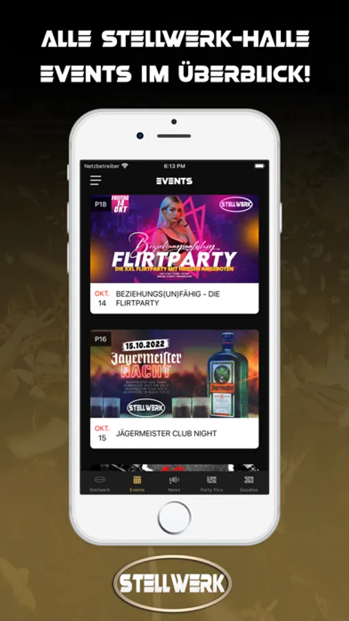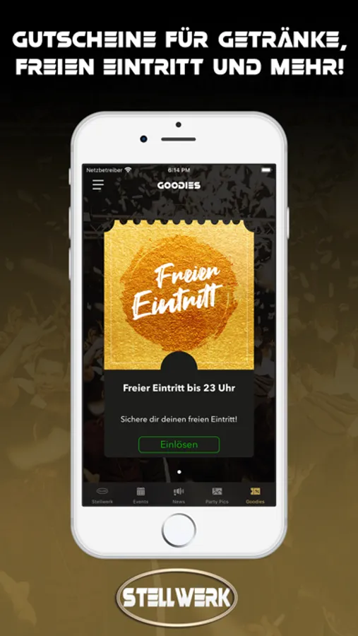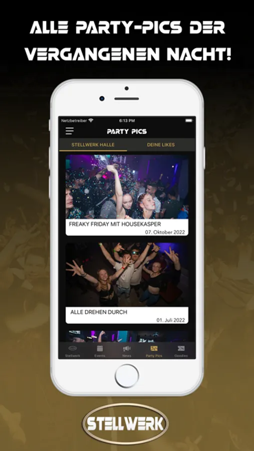 Du erfährst als erster, wann die nächste Party steigt und profitierst dabei noch von fetten Aktionen. Zum Event sparst du mit unseren Gutscheinen bares Geld. Damit du dich am Tag danach auch an den geilen Abend erinnern kannst, stellen wir alle Party-Pics in der App bereit.