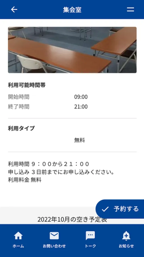マンションの共用施設に関して、アプリから空き状況の確認や予約が可能です。