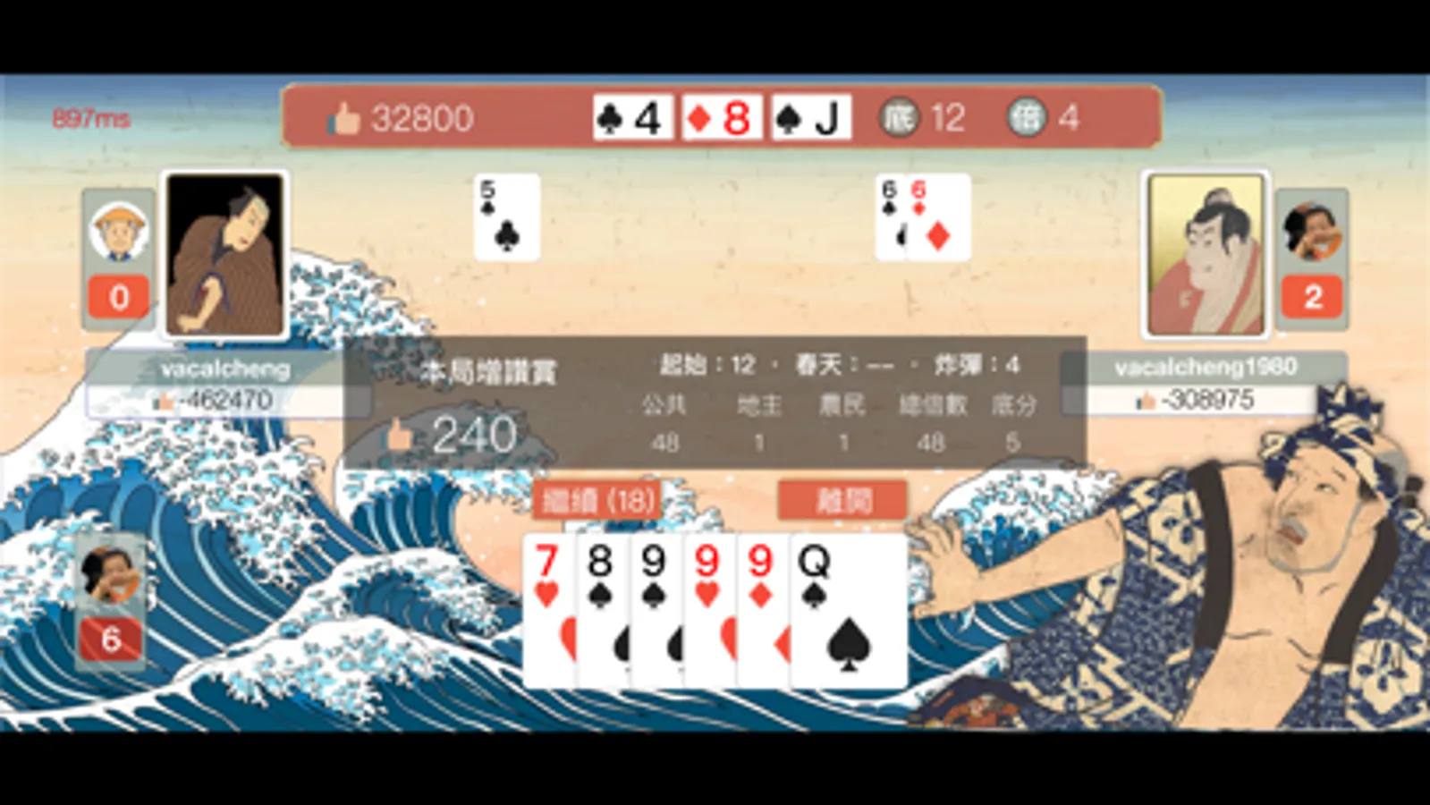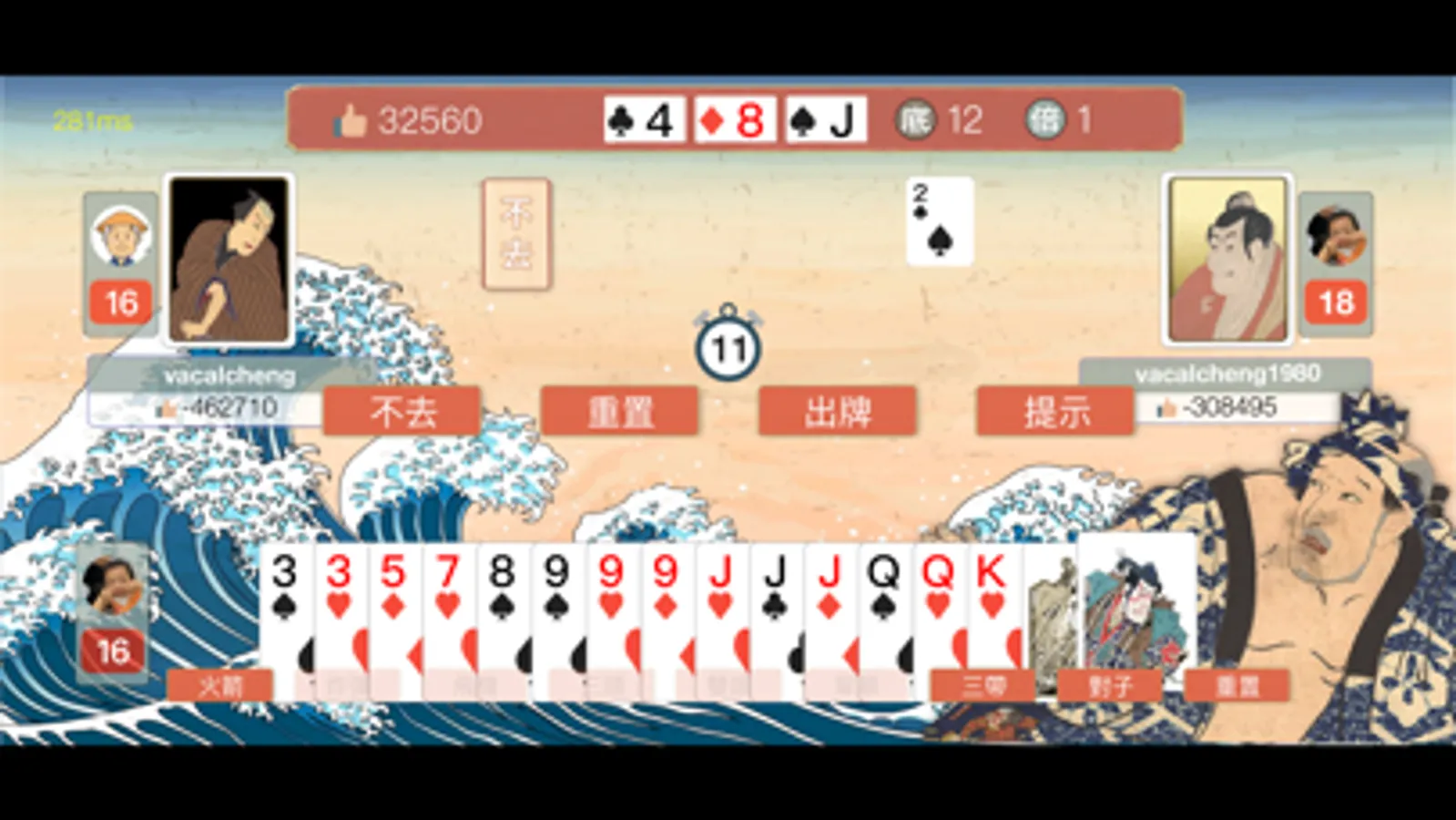 一番鬥地主是一個揉合日式風格與浮世絵設計特色的鬥地主紙牌遊戲。充滿古日本格調的人物和顏色使玩家感覺好像回到了舊時代。這個遊戲以最簡單和純粹的規則,讓用戶不受任何束縛,盡情享受網上的多人連線遊戲!