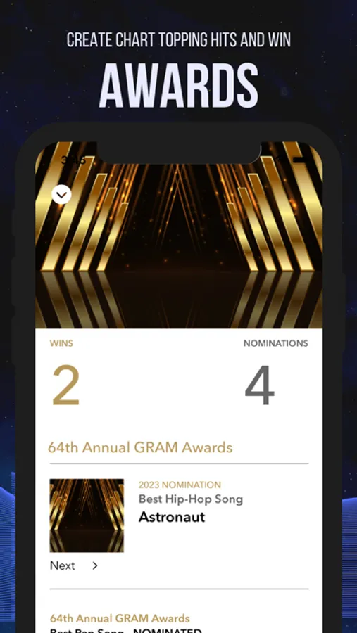 Will your songs be nominated and win awards? Become the biggest award winning artist in the world!