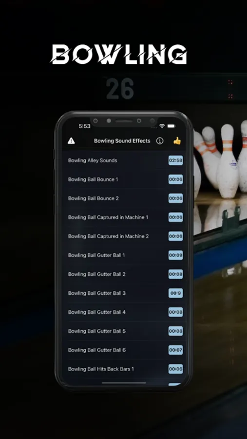 Here are some of the sounds included in the Bowling Sounds & Bowling Sound Effects App