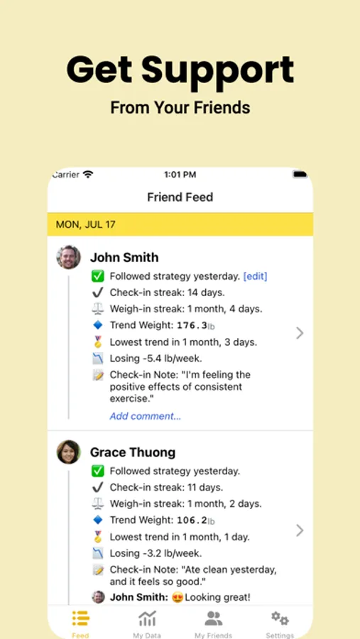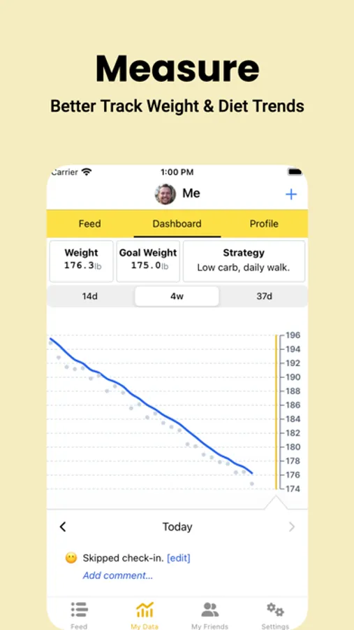 It syncs with your scale, graphs your weight trend, and lets you share data with friends. You can also "check in" with notes about how you're doing toward your weight goal and how well you are following your weight-loss strategy, so that you and your friends can offer mutual support.