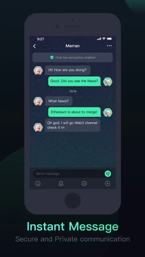 -Blockchain Address based communication and end-to-end encryption technology allow you to have secure and private communication with others.