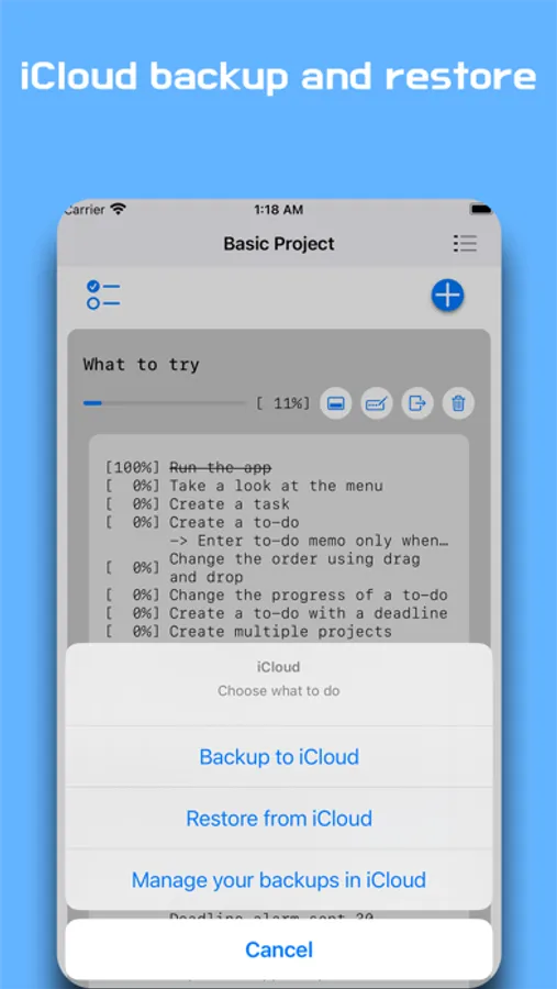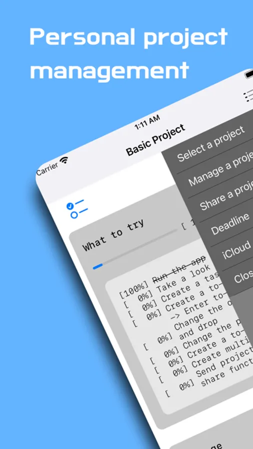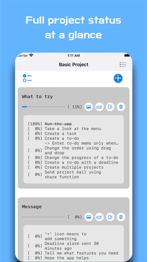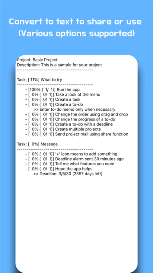 Using this app is simple. Define tasks in the project. Then you define to-dos per task and manage progress. The focus is on individual project management, eliminating the complexity of project management in organizations such as companies.