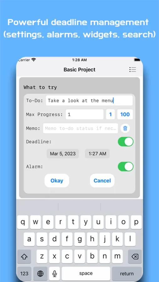 If you have a deadline, such as a license exam, you can also set a deadline and, if necessary, set an alarm to notify you 30 minutes in advance.
