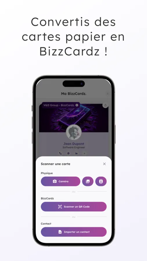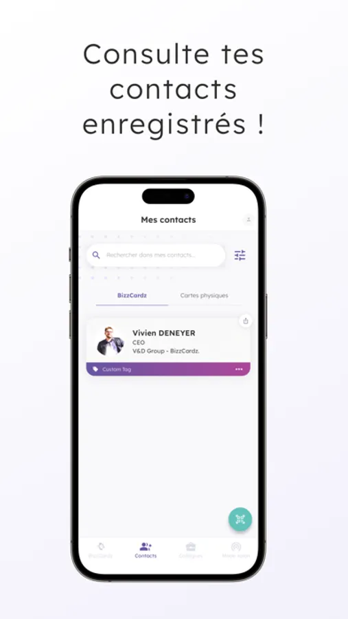 BizzCardz vous simplifie la carte de visite : avec ses classements et son partage simplifié; il ne fait pas que vous simplifier la vie, il réinvente la carte de visite professionnelle.