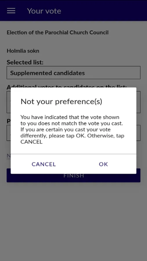 Kirkevalget: Verifisere stemme Screenshots