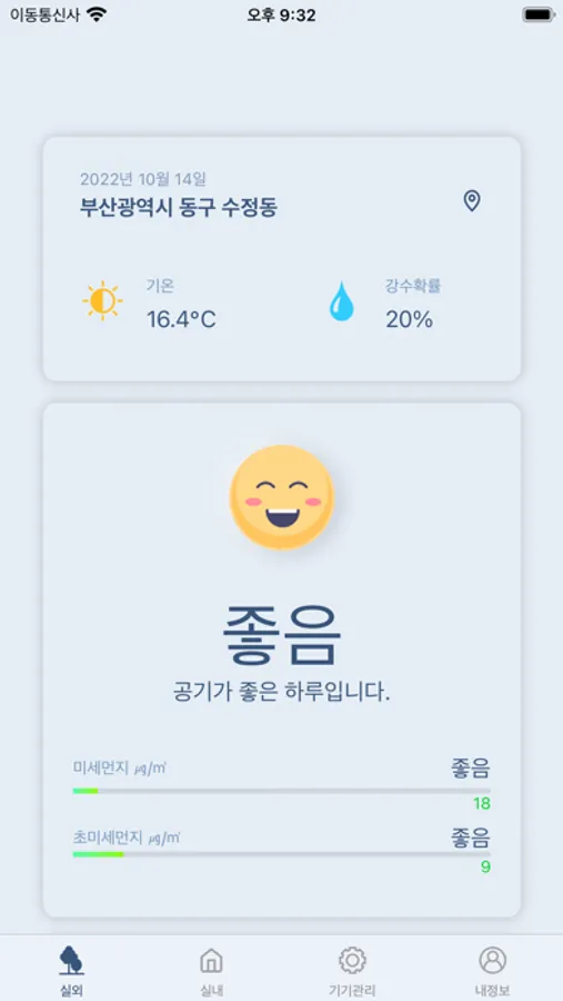 실외 날씨, 공기질 정보도 같이 받아보실수 있습니다
