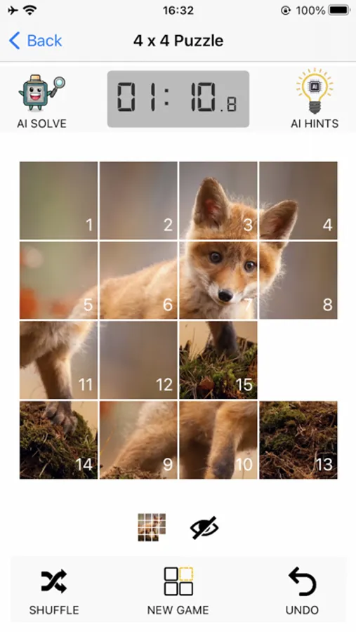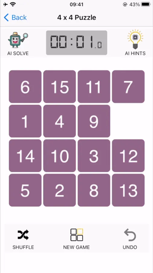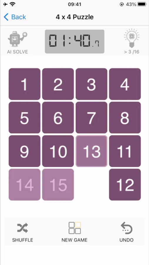 - Undo the last move you made (or the last series of moves made by AI Hinting).