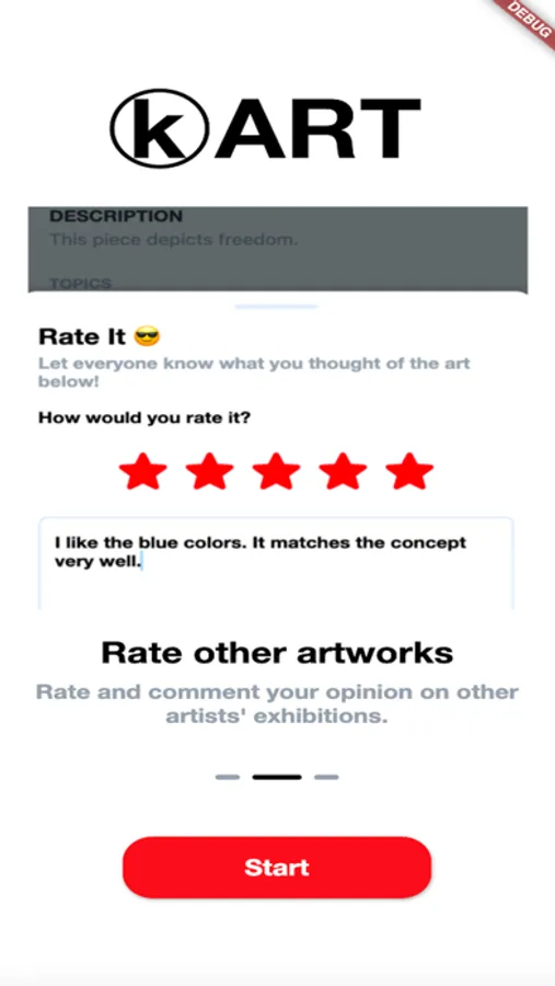 Artists can exhibit their art works and also review and rate each other's exhibited works.