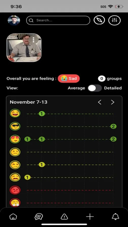 With VEXT you form groups or join groups with your peers. Those groups can be around your chemistry course, literature class, AP calculus prep, lacrosse team, volunteer project, whatever. Share your mood (anonymously) within the group each day as you collaborate. Trade notes. Ask questions. Work together. And as you do so, share your moods and see your friends' moods together.