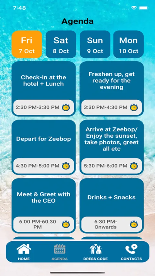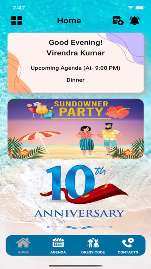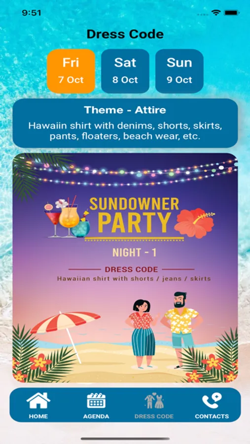 This app contains all the information related to the agenda according to each event taking place, details regarding the dress code , contact details of the event holders , also will share the daily moment information through notification. It also consist of the gallery in which the group photographs will be shared of each event.