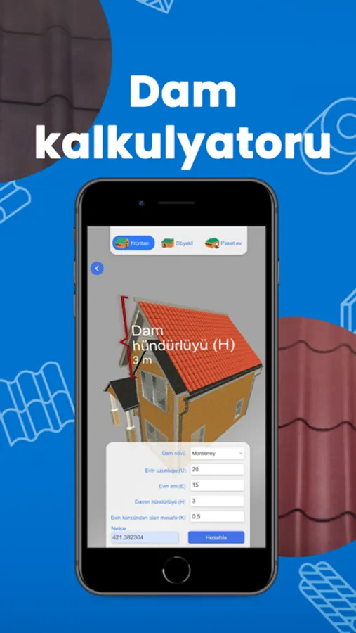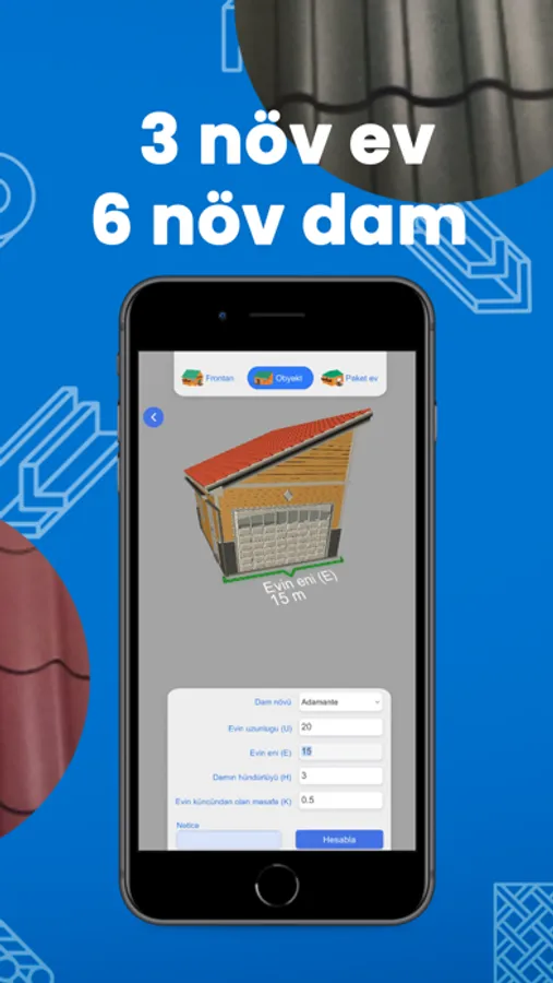 Tətbiq daxilində 3 növ dam forması (Frontan, Obyekt və Paket), 6 növ isə dam örtüyü növü mövcuddur.