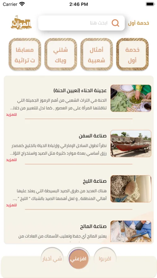 وهو تطبيق يهتم بتراث الإمارات و بما يورث من الجيل القديم للجيل الحديث ويتم من خلاله إجراء لقاءات مع كبار المواطنين لعكس تجاربهم وخبراتهم في المجالات المتنوعة البحرية والبرية والجيل والزراعة والفنون الشعبية والعادات والتقاليد والأمثال الشعبية وغيرها الكثير.