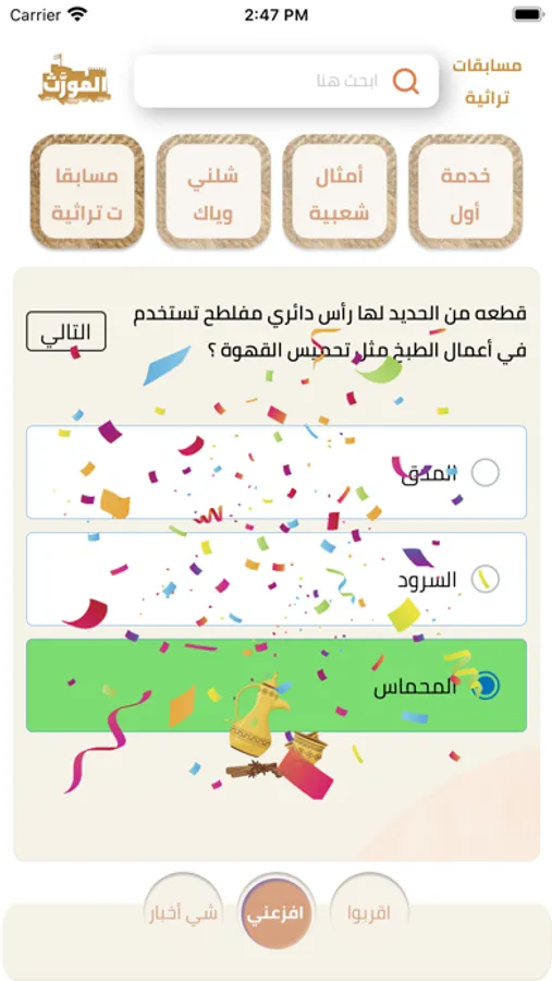 ٦ امكانية تزويده بالمعلومات التراثية كل فترة ومشاركة ذلك مع الغير