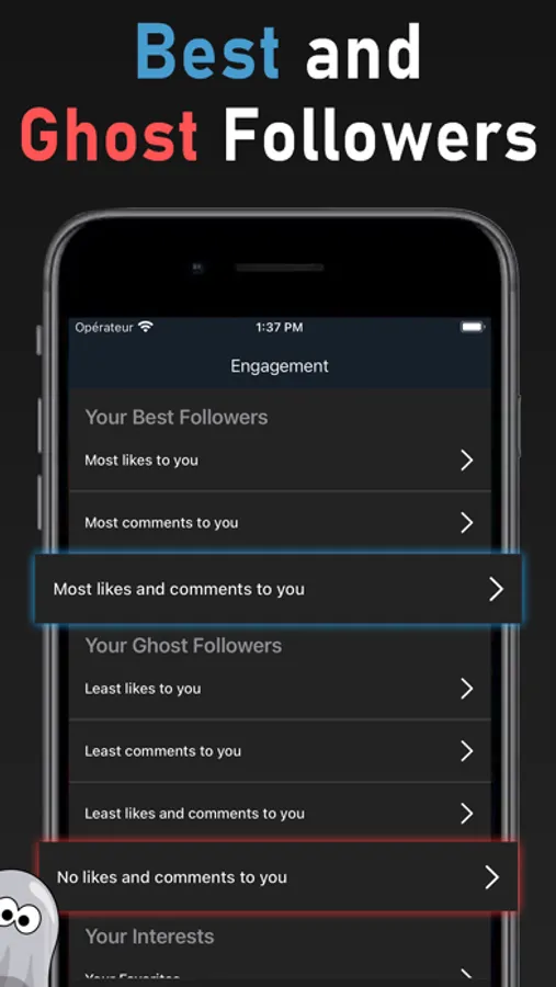 * identify ghost followers ( followers who not like and comment )