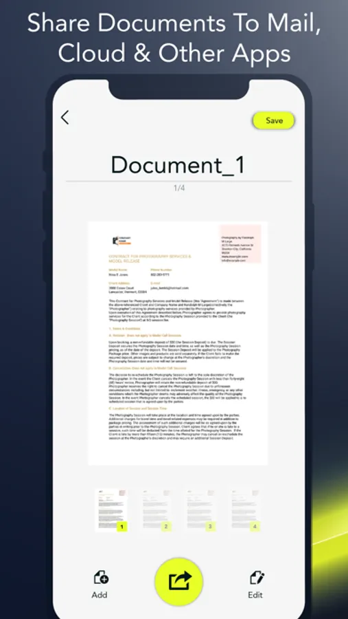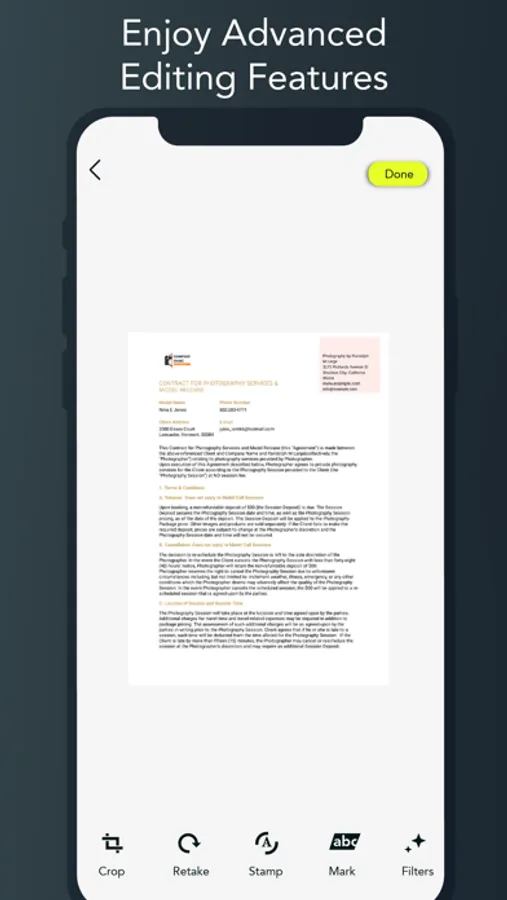 - After scanning document, you can give the file a name and able to edit it with the advance editing features.