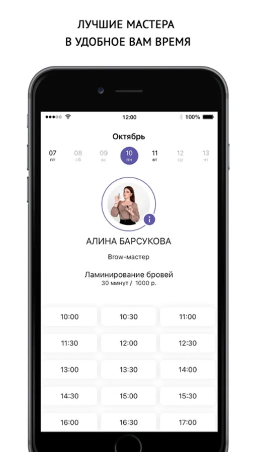 В нашем приложении Вы можете записаться к любимым мастерам 24/7