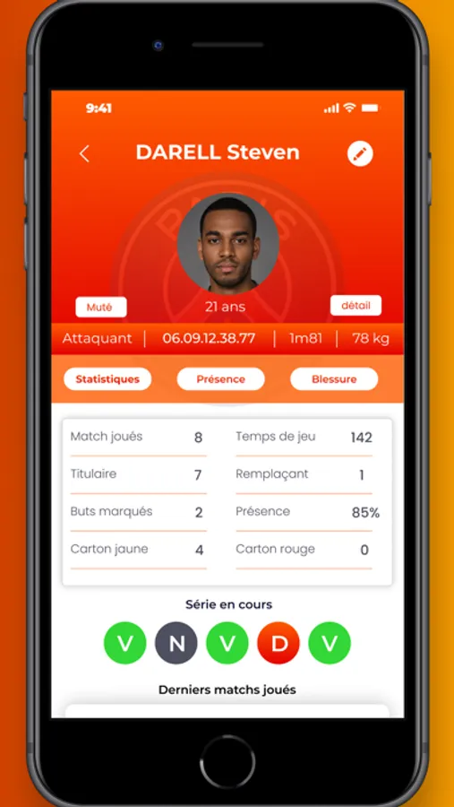 Gérez votre équipe où que vous soyez : fiche des joueurs, convocations, statistiques, matchs, entraînements...