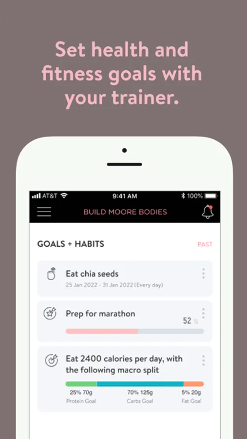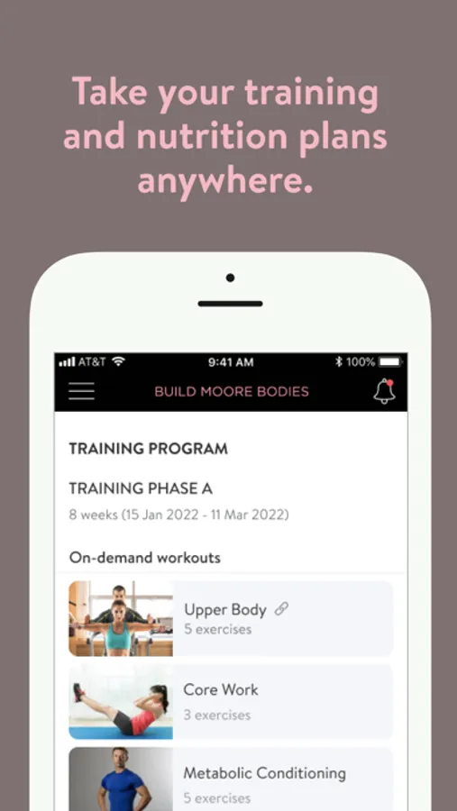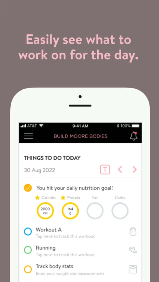 With the Buildmoorebodies App, you will have access to workout programs designed specifically to help you reach your fitness and health goals! You can follow & track your workouts, your nutrition, your lifestyle habits, measurements and results–all with the help of your coach.