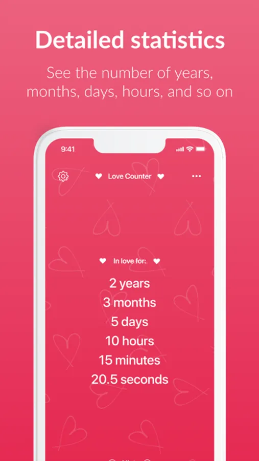 Love Counter calculates the time you have been in love and displays it in a convenient form, including a detailed analysis of how many seconds, minutes, hours, days or months have passed since you started dating.