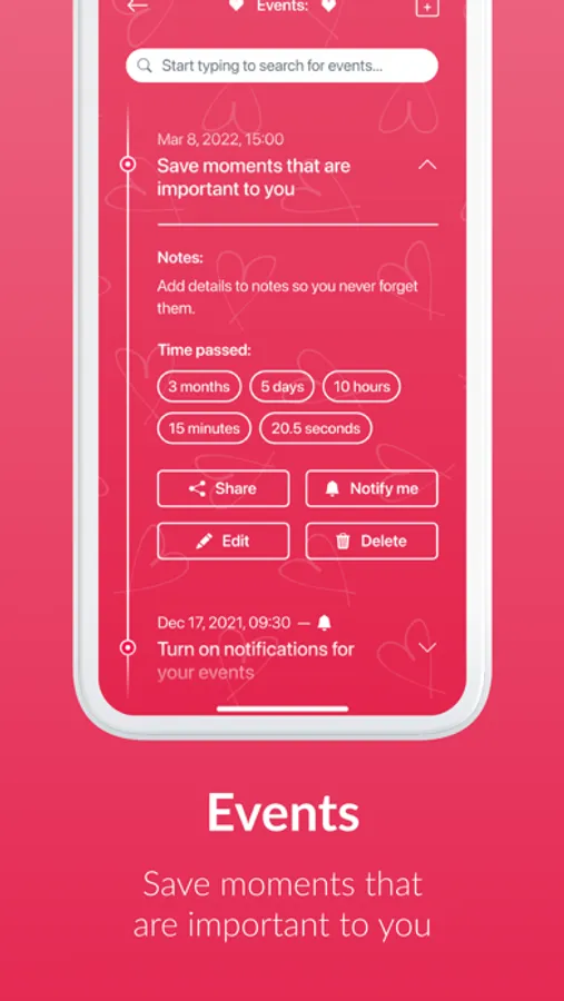 The app also reminds you of all important events and anniversaries, and notifies you when they are coming up.