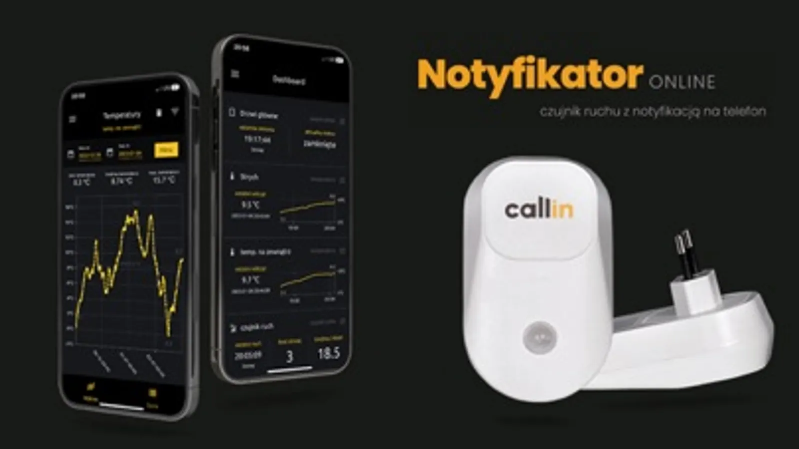 Callin to notyfikator online to czujnik ruchu, który wyśle wiadomość o wykrytym ruchu w pomieszczeniu wprost na Twój telefon. Dodatkowo czujnik temperatury pozwoli Ci monitorować temperaturę w pomieszczeniu. Callin to aplikacja, do której podłączysz swoje urządzenia i na niej zobaczysz dane wysyłane przez Twoje urządzenia Callin