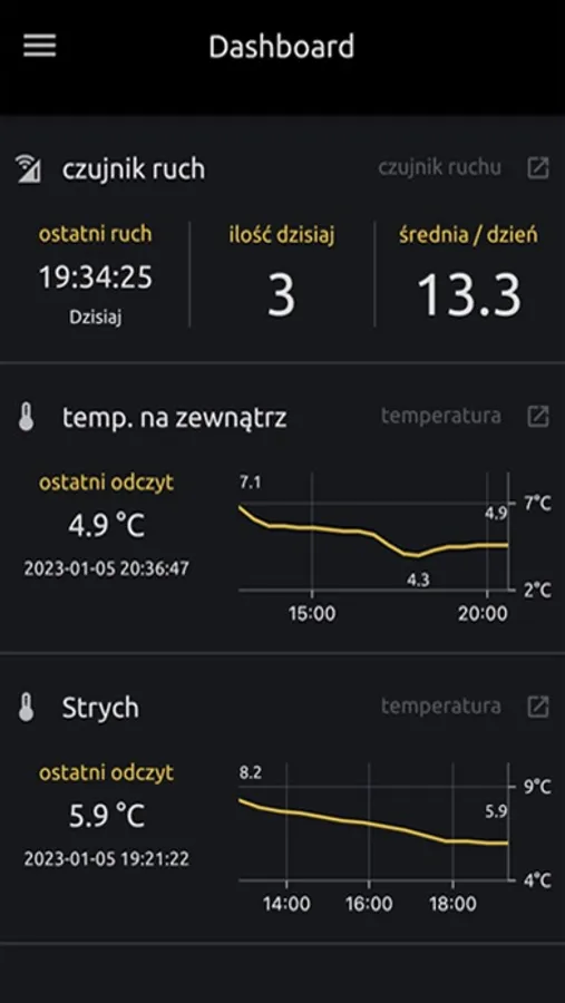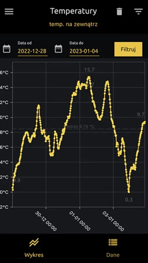 Dzięki tej aplikacji dotrą do Ciebie powiadomienia, które poinformują Cię o aktywności w zasięgu działania urządzenia. Na niej również odczytasz historyczne dane i temperatury