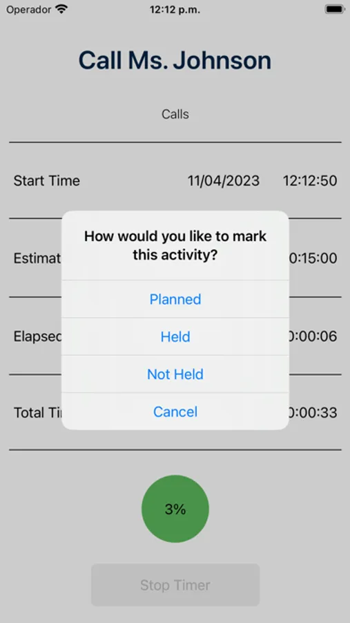 The status, progress percentage, and working time of your activities is kept up-to-date automatically.