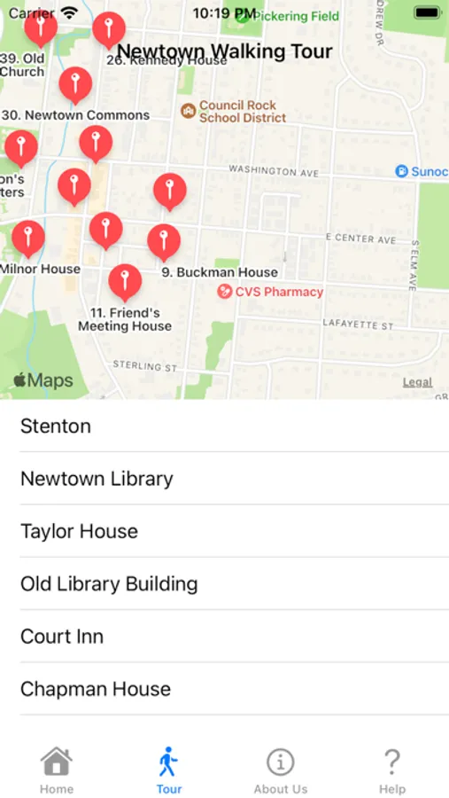 This app helps users understand Newtown's History, which was in the center of the Ten Crucial Days Period of the American Revolution. Follow along with the Newtown Walking Tour using the app, with videos highlighting each of forty-one different stops on a map.