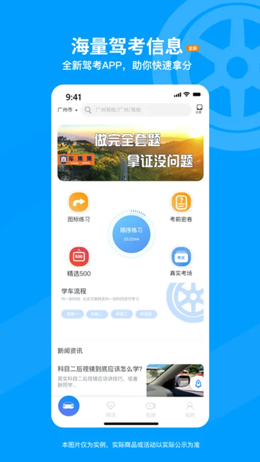 做题只是第一步,真实考场、路考实录学习视频,更为学员学习增添新的动力。完整的学车流程,一站式的驾考学习服务;从科目一到科目四,实现快速通关,为驾考学习开辟崭新的道路。
