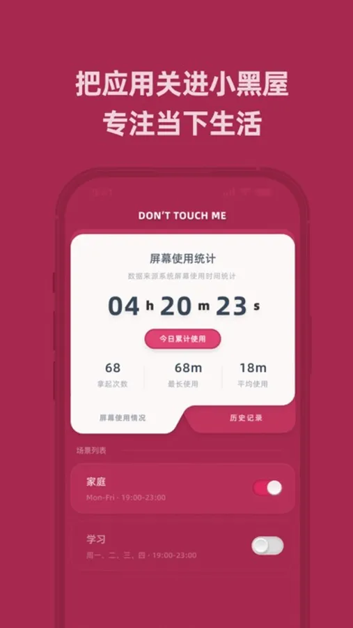 别碰我是一款帮助人们管理手机使用时间,专注当下重要事情的工具。