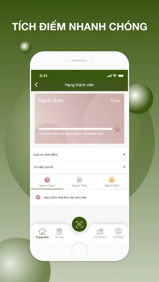Tích điểm mỗi đơn hàng, thăng hạng thành viên, quy đổi để nhận ưu đãi dành riêng cho thành viên Cộng Cà Phê.
