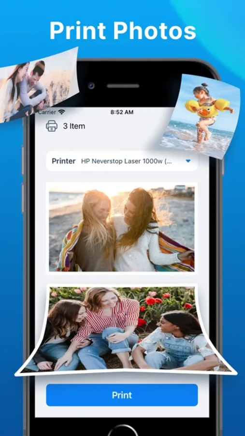 This app makes it really easy for you to print from your iPhone or iPad. Just select the document or photo from your camera that you want to print, select your printer and send the print job. You can print all sorts of different documents: PDF, Word DOC, Excel XLS, PowerPoint PPT, Photoshop PSD, JPEG, PNG, BMP, TIFF, GIF and more.