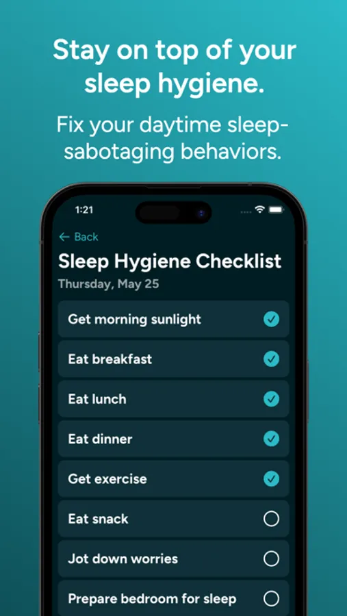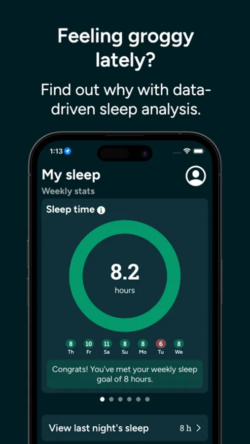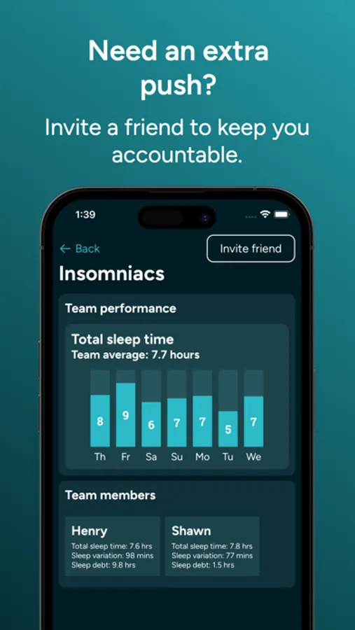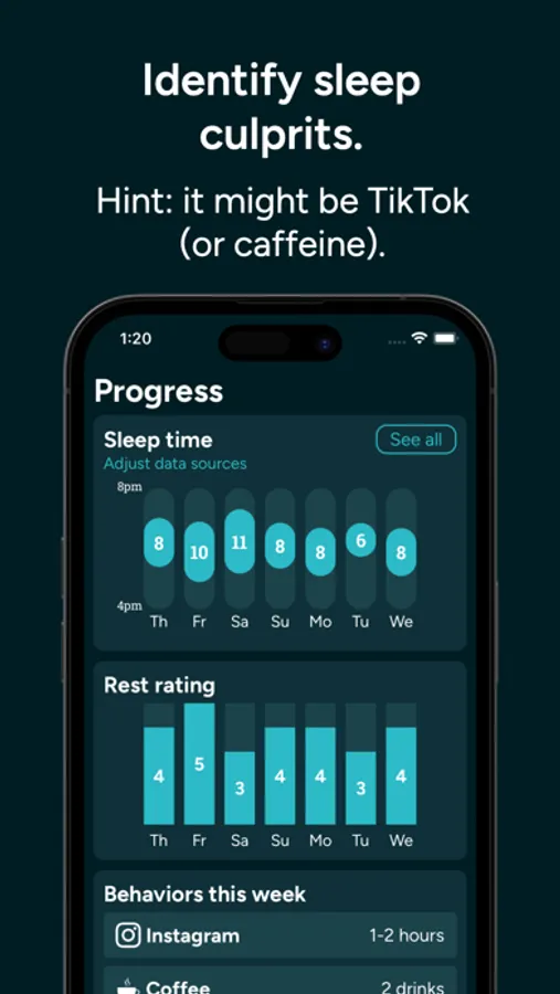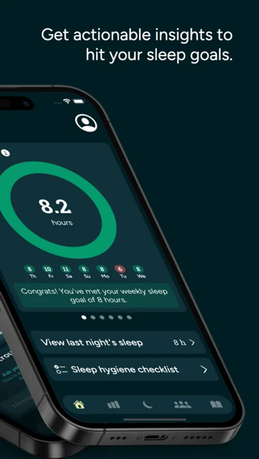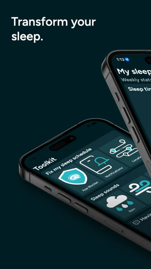 Our system is simple. Track your sleep automatically on the app, record behaviors affecting your sleep, and turn on notifications and our app blocker to improve your habits. Get immediate insight into your total sleep time, sleep debt, and sleep variation over the past week, and improve your sleep stats over time.