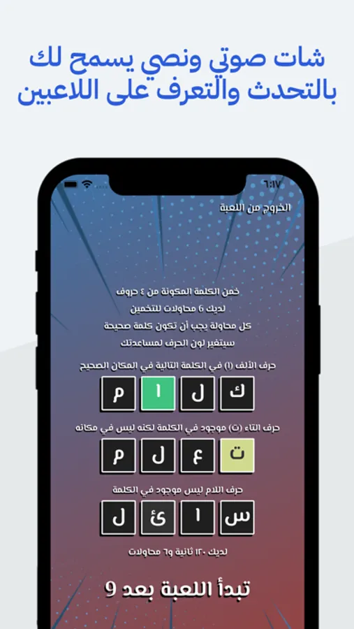 • لعبة حزر الكلمة - حزر الكلمة من خلال ٦ محاولات